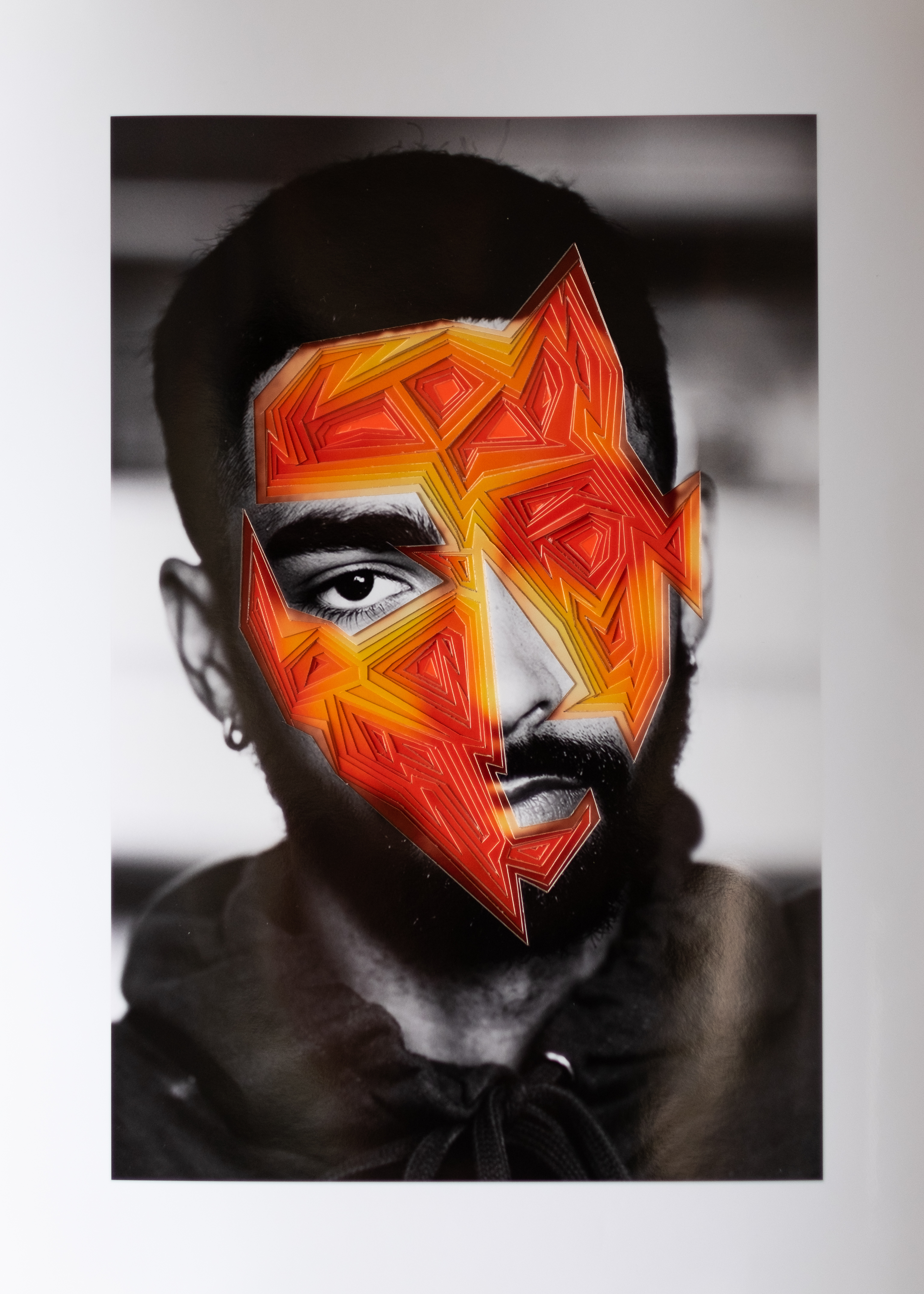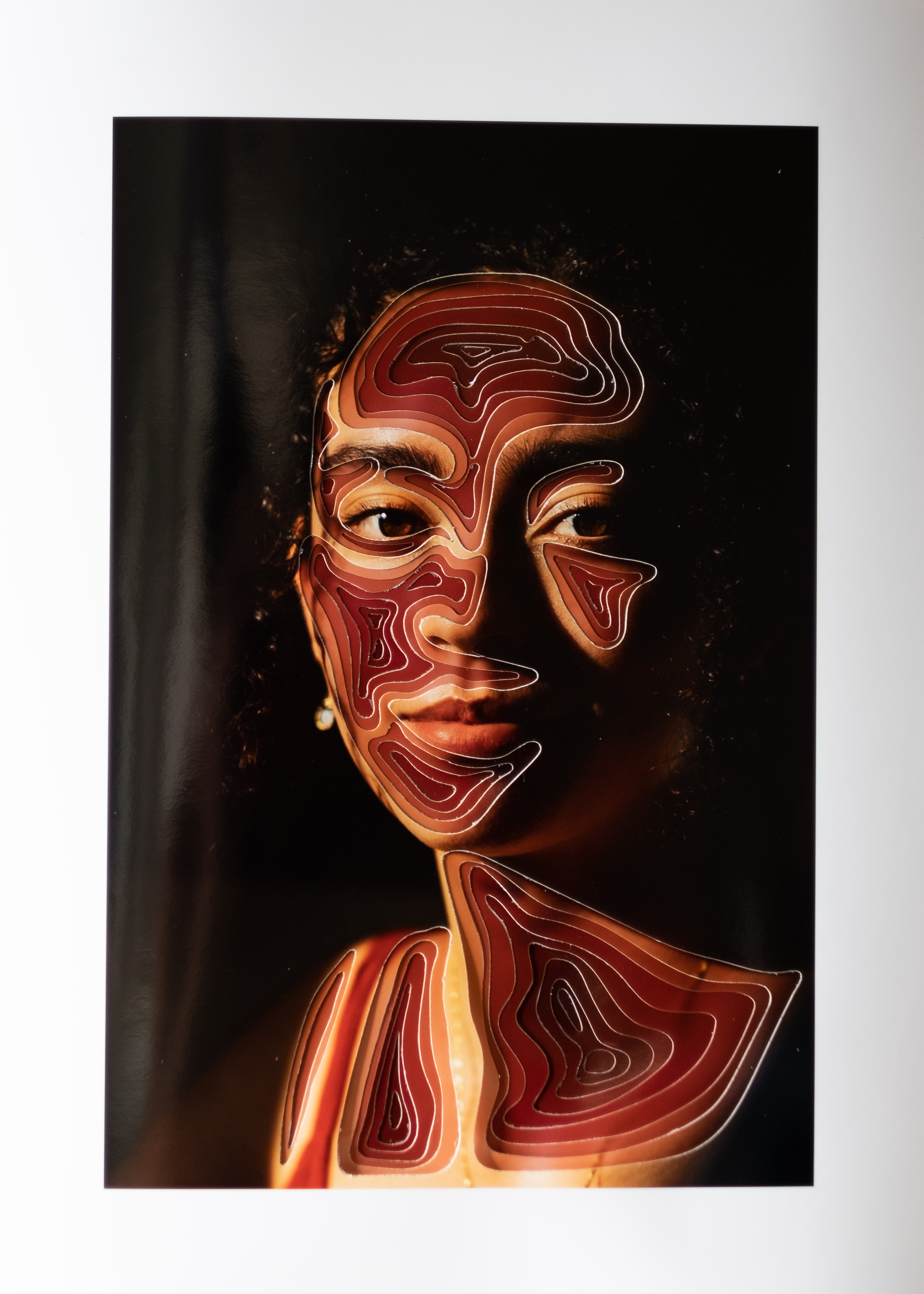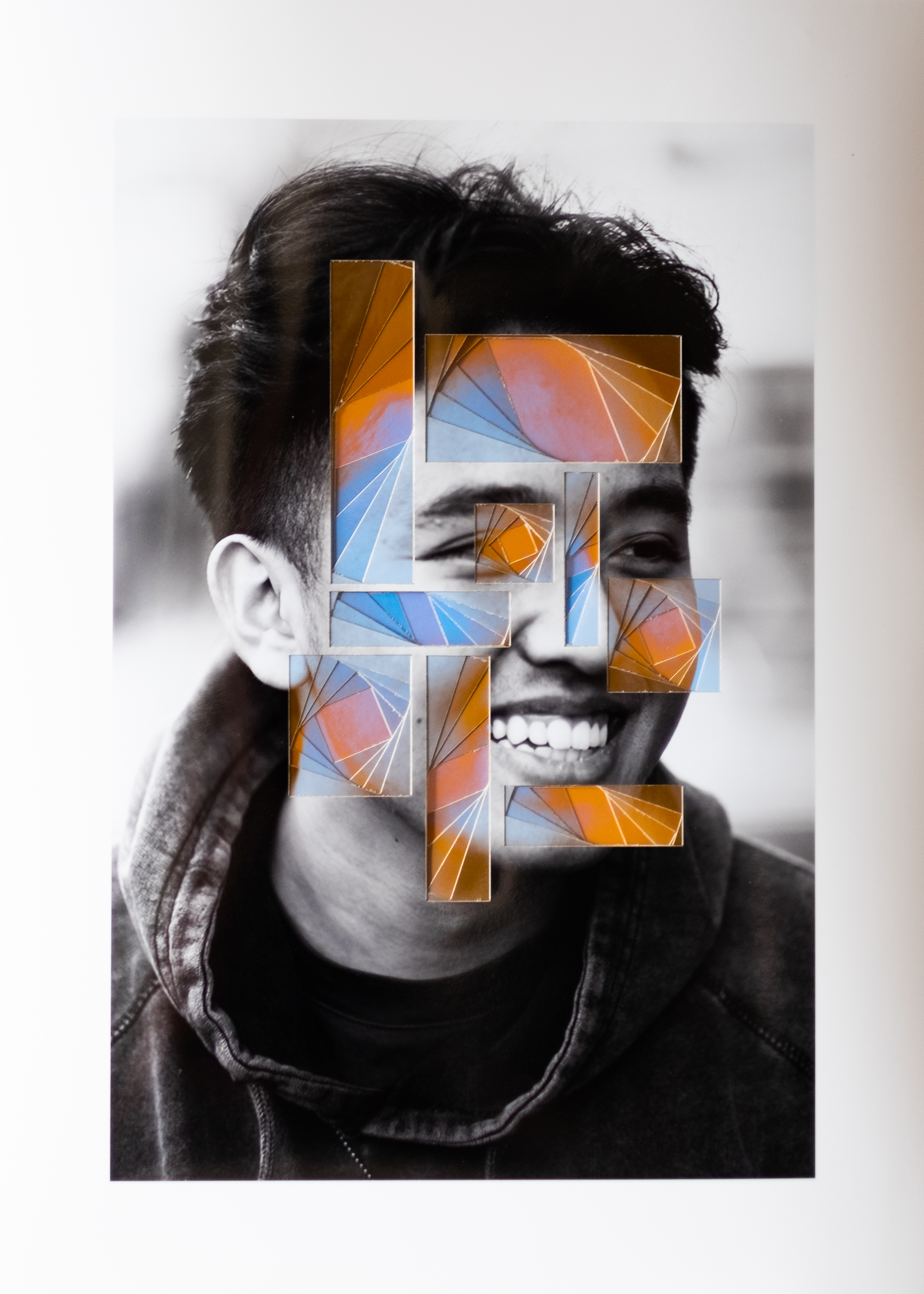 Using various patterns and a carve-by-cutting technique, this project exposes the complex layers of identity that sit below the surface, each using an abstract pattern unique to that person. After taking a variety of close up portraits, I carefully selected 1-2 per person, and started brainstorming the patterns and colors I would use to portray their inner identity. Each final piece consists of about 5-10 printed images, each of which use the same selected portrait, but with modified color and cutting variations. To both emphasize and literalize this “depth beyond the surface” idea I layered these photos with a black and white image on the top that incrementally increases in color as it gets deeper. I used a laser printed and xacto knife to cut out organic and geometric patterns, covering the skin on the face and leaving a few identifying features. This project was not only a technical exploration of cutting and photographic sculpture, but also an exploration of identity through pattern, color, and portraits which has been a consistent theme throughout my work.